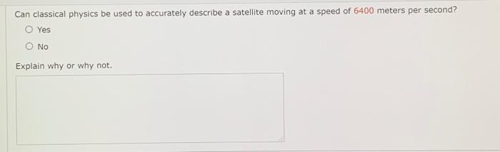 Can classical physics be used to accurately describe a satellite moving at a speed of 7500 ms. Explain why or why not. Yes No Explain why or why not.